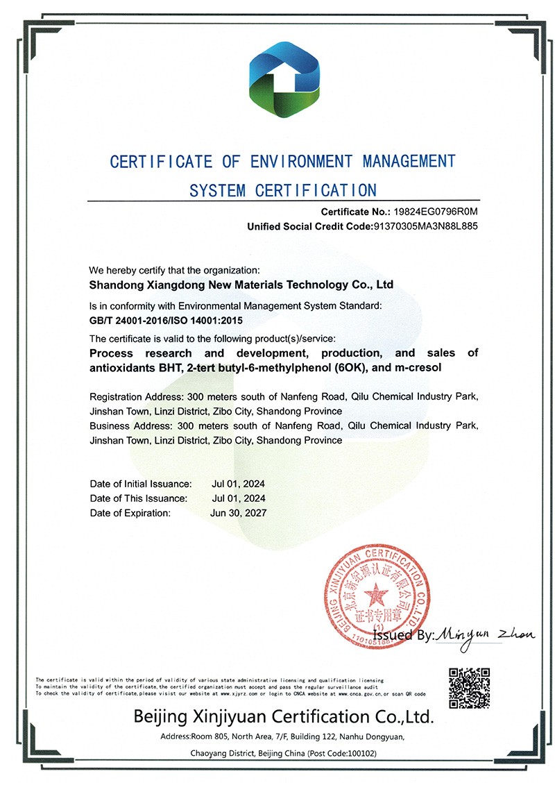 山東祥東新材料科技有限公司1.2萬噸/年6-叔丁基鄰甲(60K)、4-叔丁基鄰甲酚(偏 24 酚)和 4,6-二叔丁基鄰甲酚(偏 246 酚)烷基甲酚項(xiàng)目竣工環(huán)境保護(hù)驗(yàn)收監(jiān)測報(bào)告